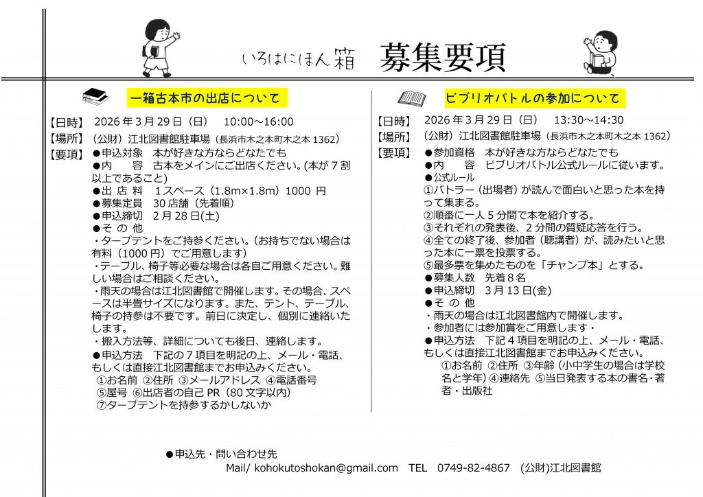古本市出店者、ビブリオバトル参加者大募集!